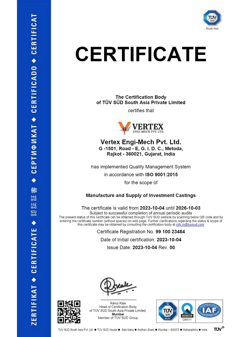 The inherent quality emphasis throughout the manufacturing process on some of the most modern machinery & equipment has gained vertex the coveted international mark of quality management systems – ISO 9001.